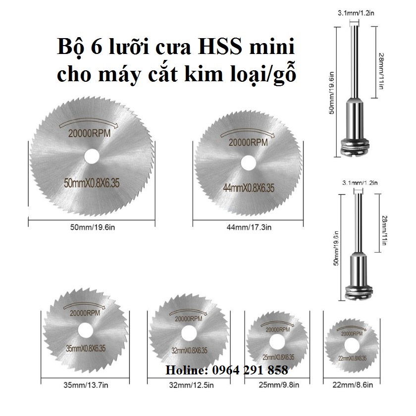 Nếu bạn ham thích mỹ nghệ hoặc DIY thì chắc bạn cần một công cụ cắt nhỏ, với bộ 6 đĩa cưa mini đường kính chỉ từ 22mm đến 50 mm nối với máy khoan, máy mài khắc là bạn đã có thể dùng để cắt gỗ, nhựa, nhôm, mạch in và một số vật liệu có độ cứng không cao khác. Các đĩa cưa mini được làm từ thép gió HSS và có thê chịu được tốc độ vòng quay đến 20000 vòng phút.