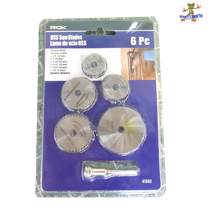 Bộ 5 lưỡi cưa đường kính 22mm, 25mm, 32mm, 35mm, 44mm. Cán 3mm.