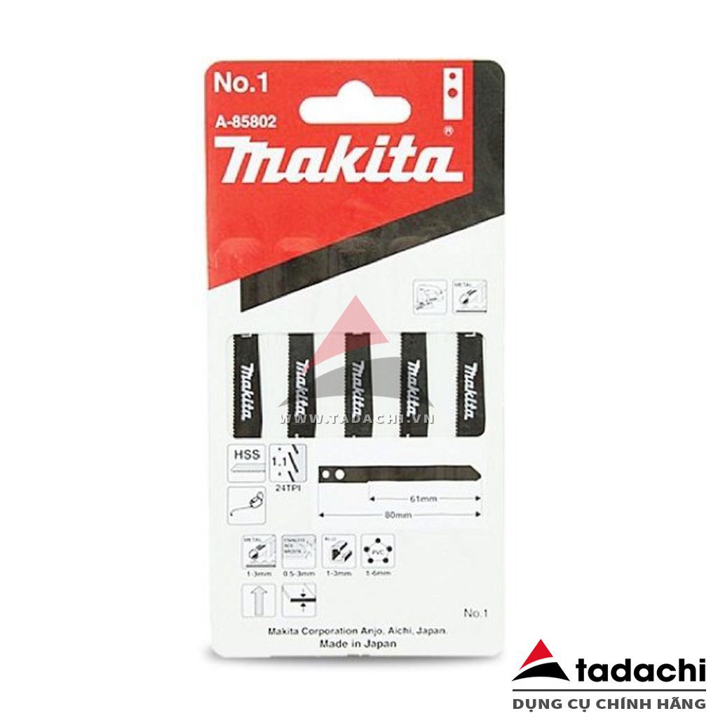 - Lưỡi cưa lộng chuyên cắt sắt No.1 Makita A-85802- Thiết kế chuôi có lỗ: thích hợp cho máy cưa lộng hàng nội địa Nhật.