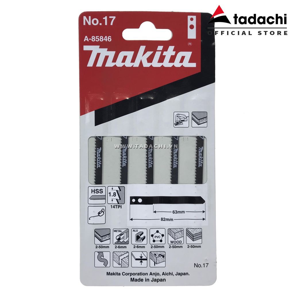 Nhà cửa & Đời sống > Dụng cụ & Thiết bị tiện ích > Dụng cụ > Cưa, máy cắt & máy mài || Lưỡi cưa lọng chuôi có lỗ No.17 Makita A-85846 (01 lưỡi)Còn hàng