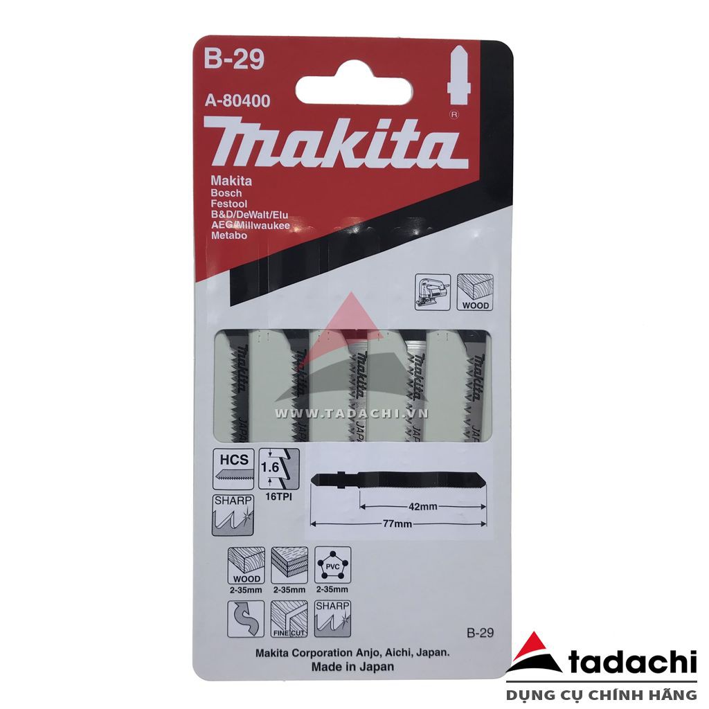 Nhà cửa & Đời sống > Dụng cụ & Thiết bị tiện ích > Dụng cụ > Cưa, máy cắt & máy mài || Lưỡi cưa lộng chuyên cắt lượn gỗ Makita B-29Còn hàng