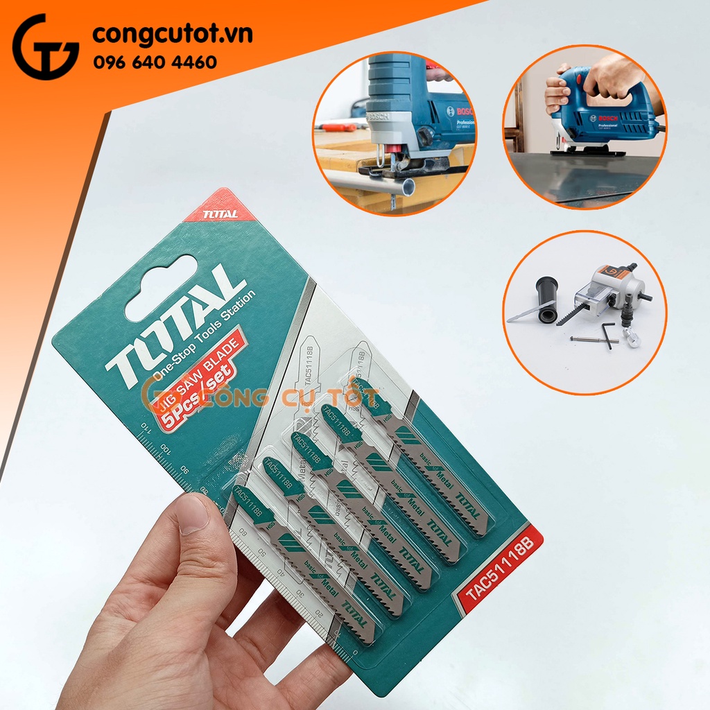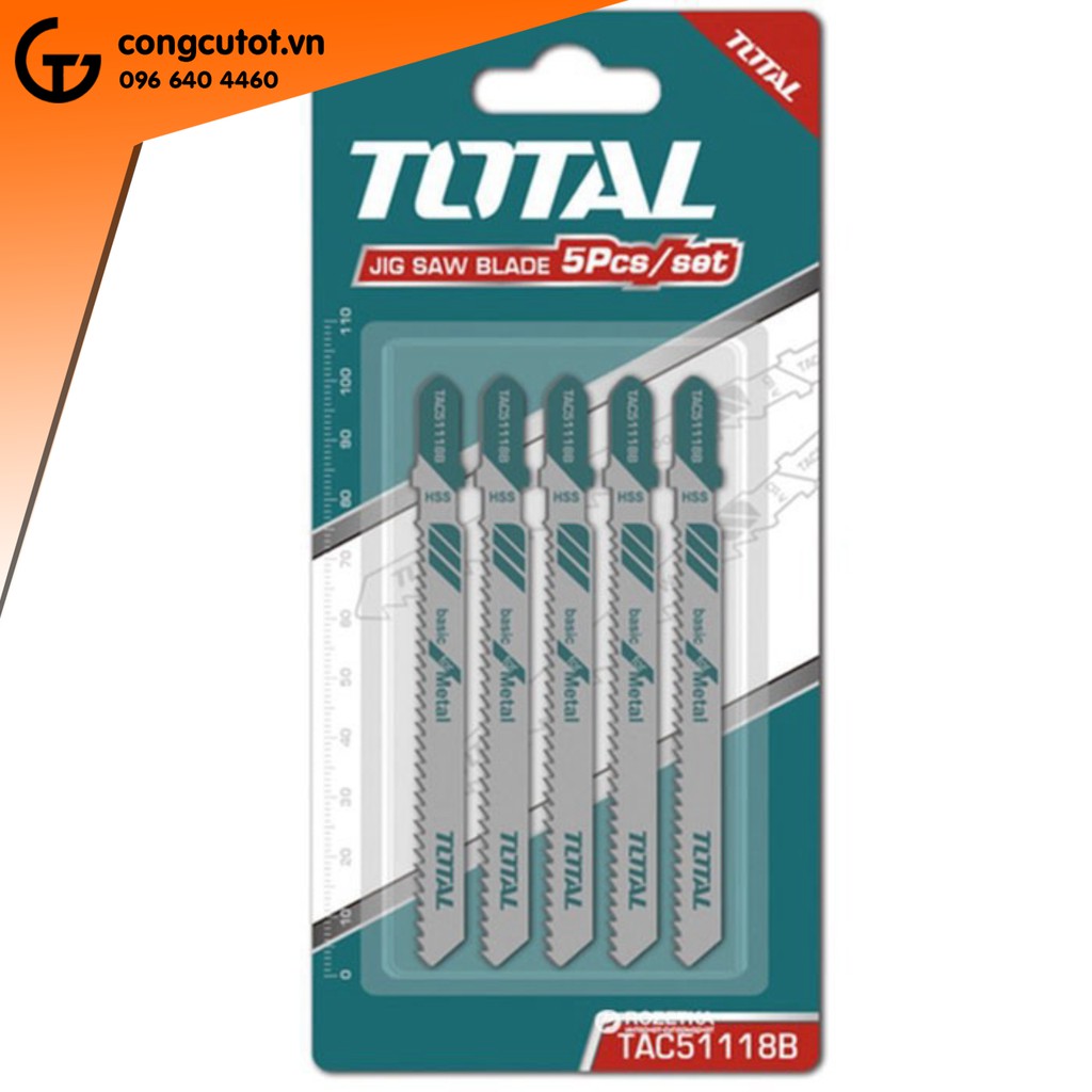 Bộ 5 lưỡi cưa lọng cưa sắt 50mm Jig Saw Blade Total TAC51118BThông số kỹ thuật: