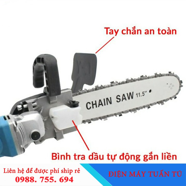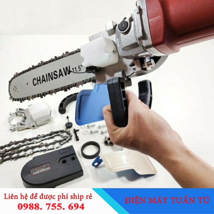 shop với nhiều năm kinh nghiệp kinh doanh trong lĩnh vực dụng cụ cầm tay chúng tôi xin giới thiệu Bộ khung cưa xích gắn máy mài góc (lam xích 11,5" cưa gỗ sâu tối đa 28cm).
