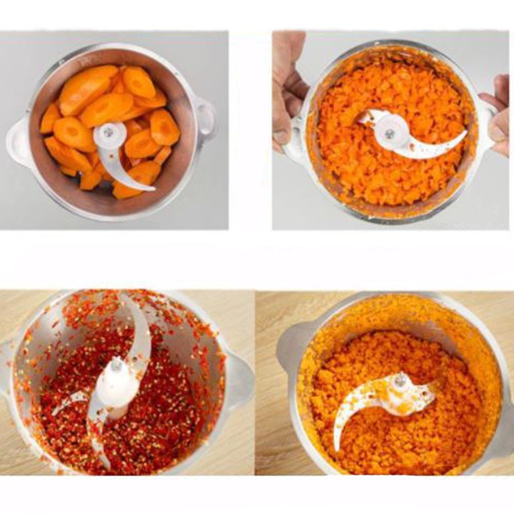 Lưỡi dao bằng thép không gỉ sắc nét: với 4 lưỡi dao bằng thép không gỉ có thể đảo ngược sắc nét, giúp chặt thực phẩm hiệu quả hơn