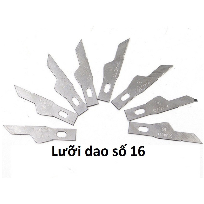 Lưỡi số 15 cho các vết rạch nhỏ và Lưỡi dao số 11 cho các vết rạch rất nhỏ.