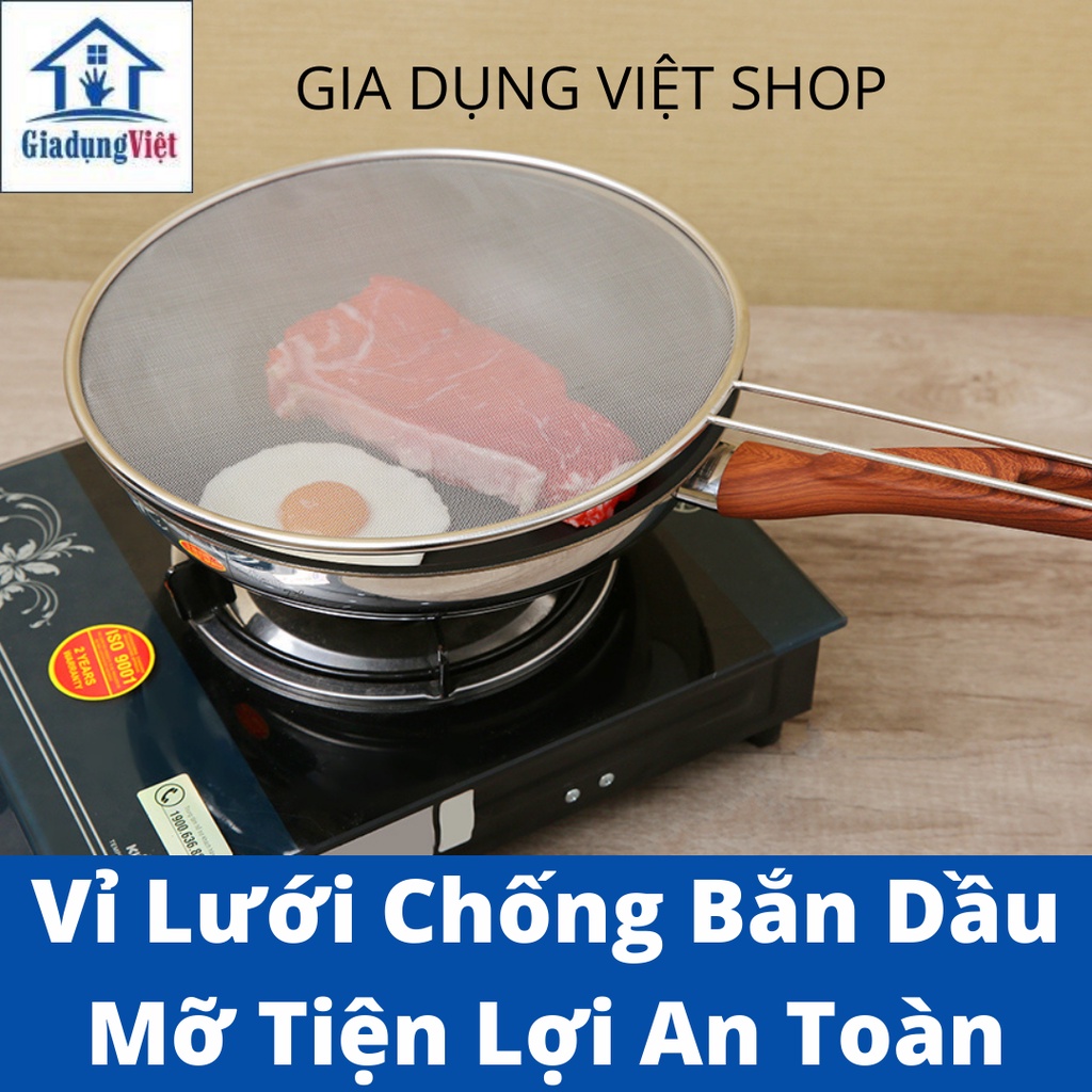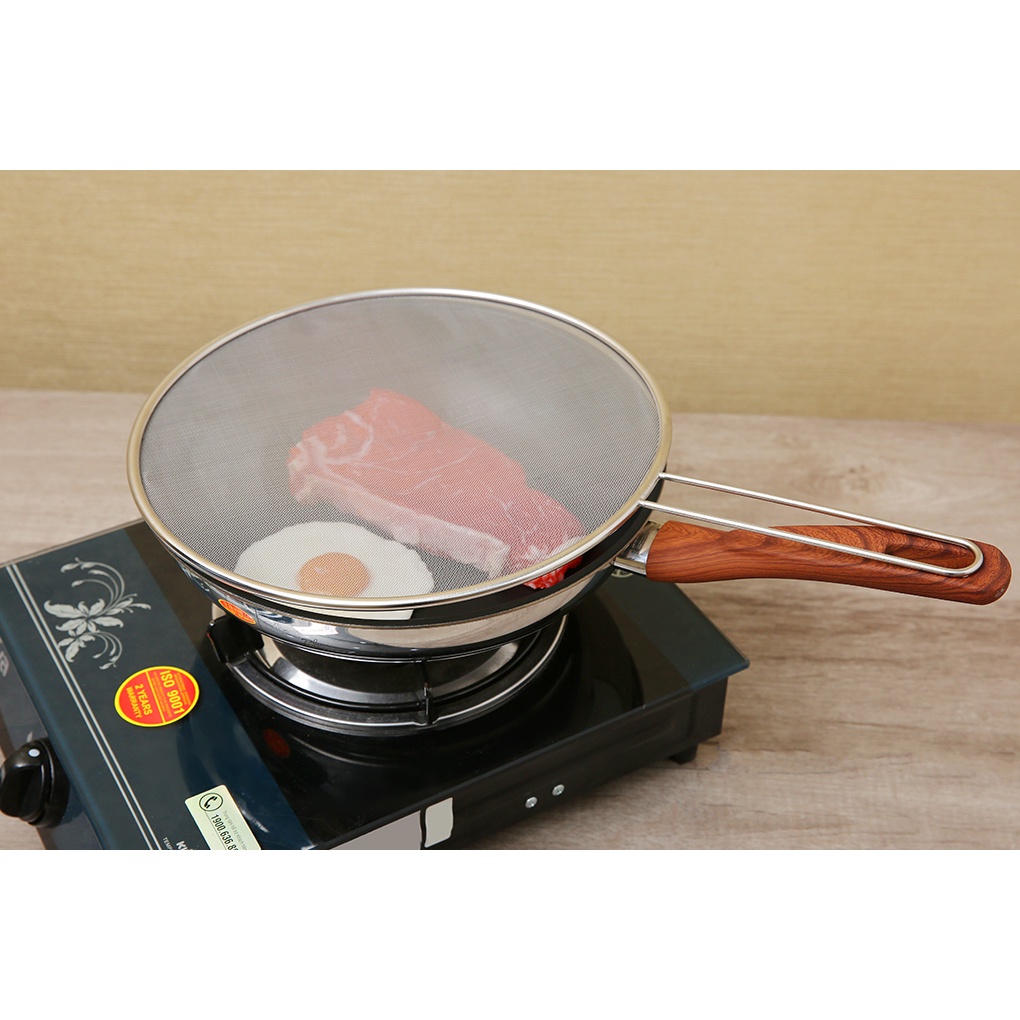 Lưới đậy chảo chống văng dầu mỡ inox có tay cầm tiện lợi