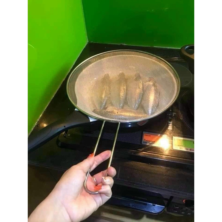 Lưới đậy chảo chống văng dầu mỡ inox có tay cầm - Nắp lưới đậy chảo chống văng dầu mỡ inox có tay cầm
