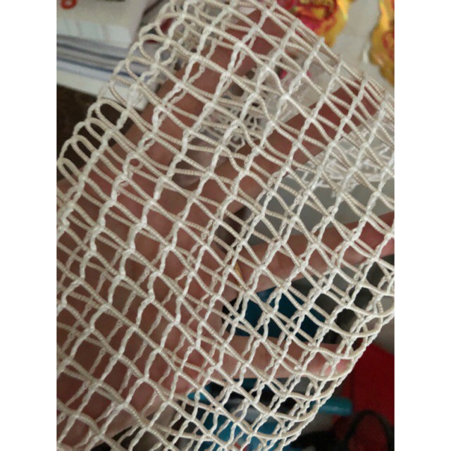 - Mô tả: Lưới có dạng hình ống, mắt lưới hình vuông và có độ co giãn rất lớn. Đặc biệt nhất là chịu được nhiệt độ nấu và xông khói trong thời gian dài.