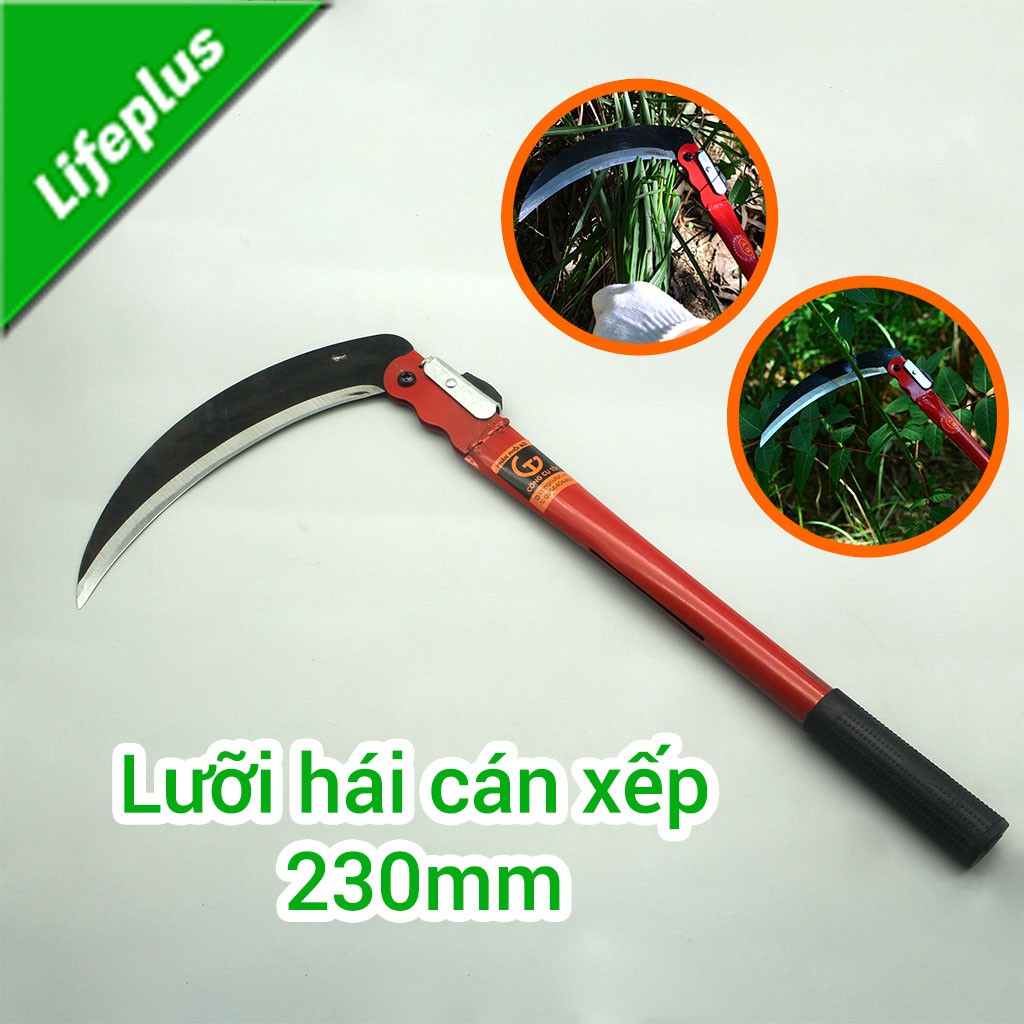 Lưỡi hái cán xếp 230mm được làm bằng thép gió sắc bén, độ bền cao. Cấu tạo đơn giản, có thể gấp gọn lại khi không sử dụng đến. Có chốt khóa - mở linh hoạt. Thân lưỡi hái làm bằng hợp kim, chống va đập, độ bền cao. Tay cầm lưỡi hái được bọc cao su, chống trơn trượtĐặc điểm nổi bật: