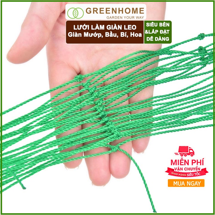 Nhà cửa & Đời sống > Làm vườn > Dụng cụ làm vườn || Lưới làm giàn cây leo, R180xC180cm, độ bền cao, dễ lắp đặt, không viền, làm giàn bầu, mướp, bầu, bí |GreenhomeCòn hàng