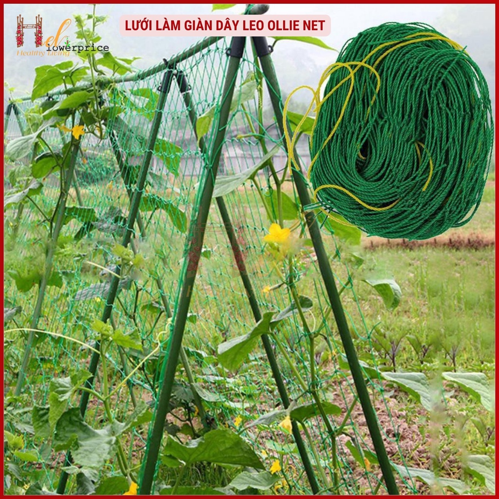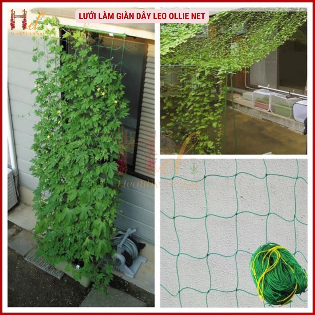 - Lưới làm giàn dây leo Ollie net sử dụng chất liệu polimer dẻo dai, bền bỉ.