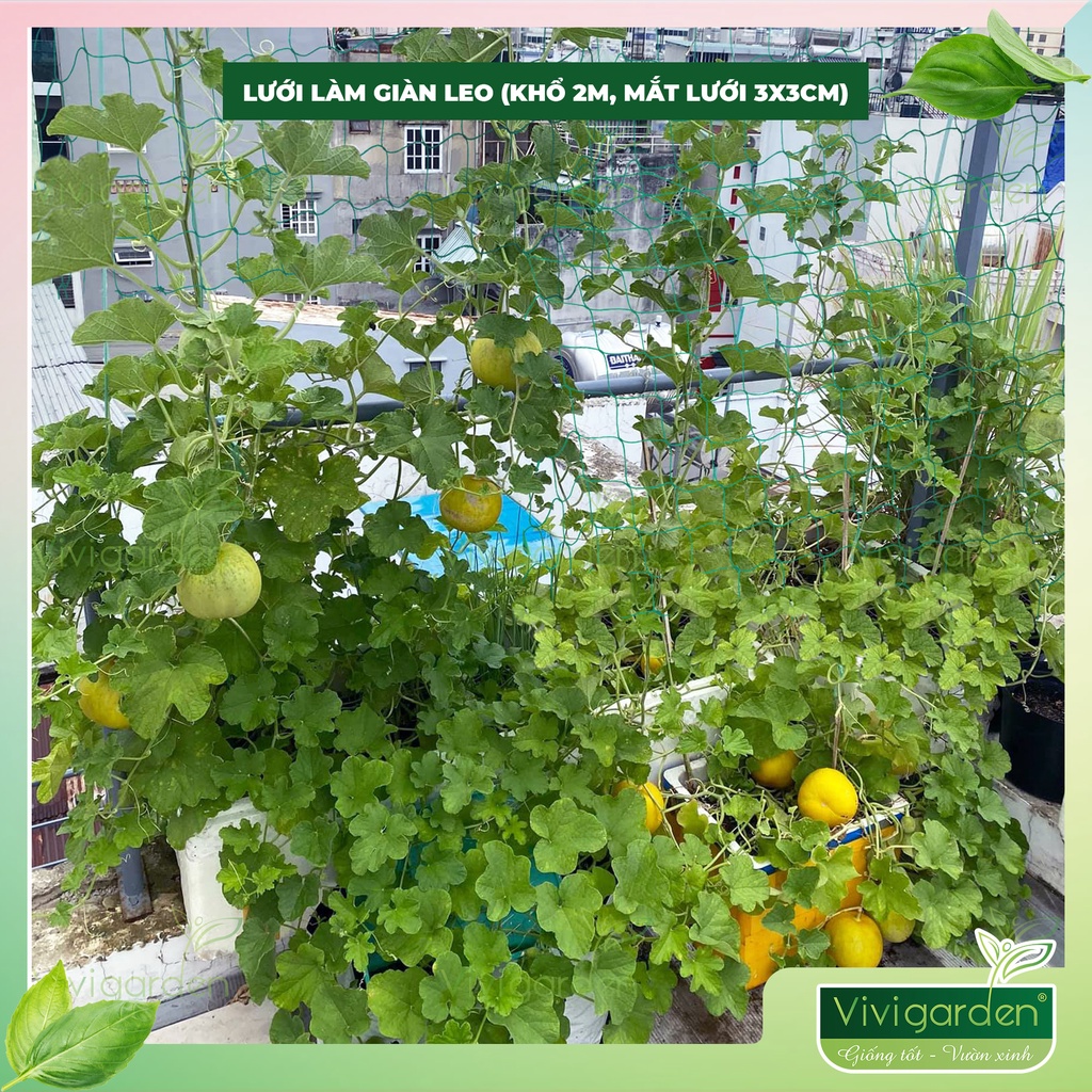 - Lưới giàn leo giúp nâng đỡ các loại cây leo, định hình cho giàn bầu, giàn bí, giàn mướp, giàn dưa leo,.... giúp bạn tiết kiệm thời gian làm giàn cũng như tính thẩm mĩ cao hơn so với làm giàn bằng tre truyền thống.