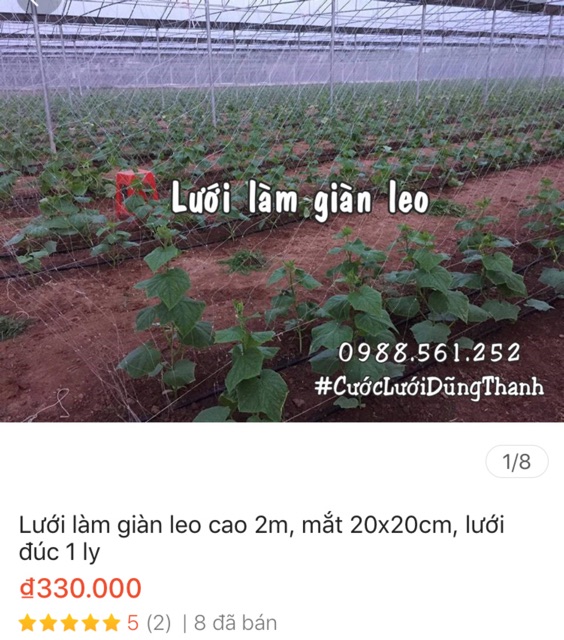 Nhà cửa & Đời sống > Làm vườn > Khác || LƯỚI LÀM GIÀN LEO (GIÀN DƯA LEO, GIÀN BÍ NGÔ, GIÀN MƯỚP...)Còn hàng