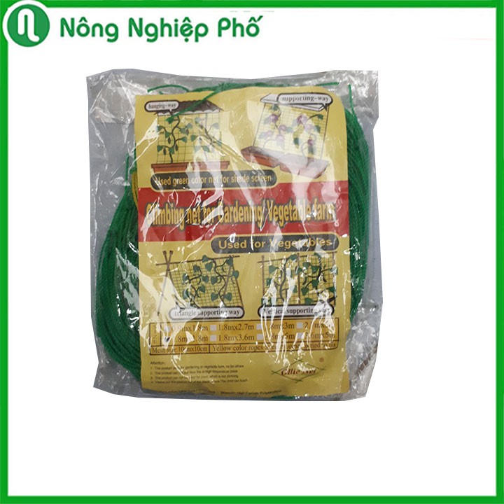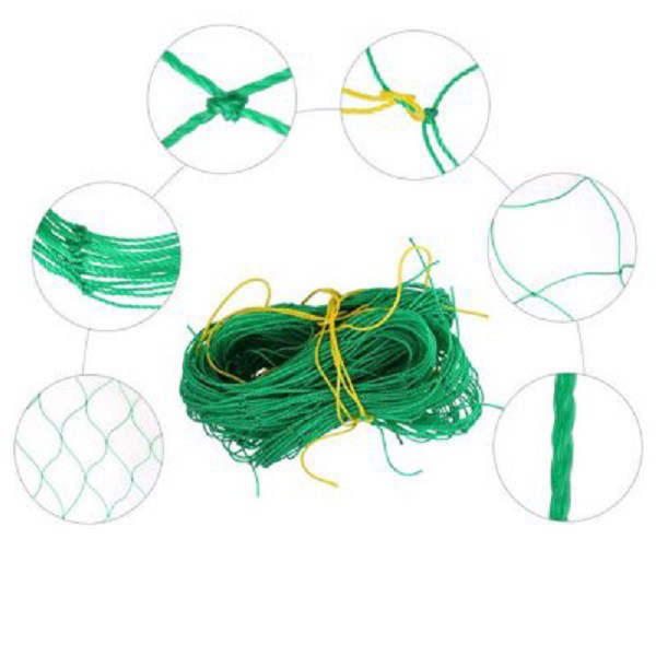 Lưới làm giàn leo màu xanh mắt 10x10cmMô tả ngắn về sản phẩm: Lưới làm giàn leo được sản xuất bằng chất liệu poly khá bền, được dùng để làm giàn cho các loại dây leo như: Bầu, bí, mướp, khổ qua, dưa leo,... và các loại hoa như: Dây leo, tóc tiên,...