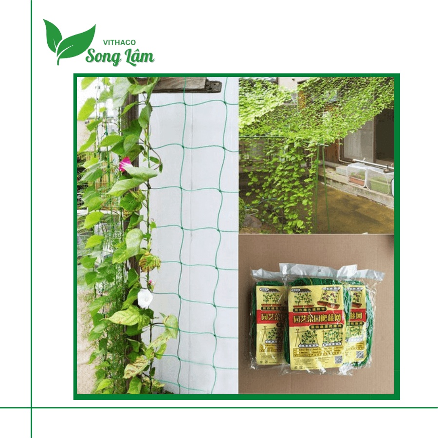 - Quy cách lưới: 0.9m x 1.8m / 1.8m x 1.8m / 3.6 x 1.8m (phù hợp với đa số các loại cây dây leo)