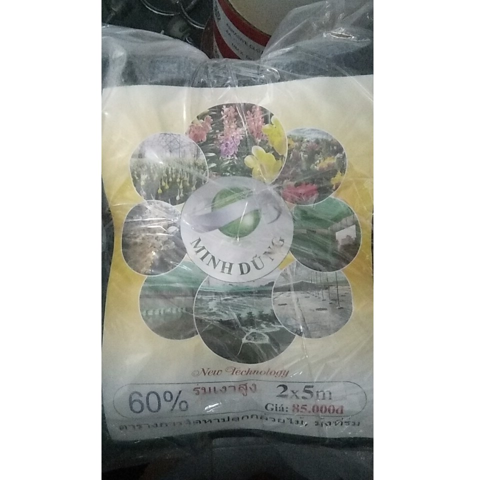 Lưới che nắng 60% khổ 2m màu xanh và màu đen dùng để che nắng cho phong lan, vườn ươm cây, cây trồng, vườn rau quả được nhập khẩu từ Thái Lan với độ bền nhiều năm.Bán theo bịch đóng gói sẵn 5m và 10m.
