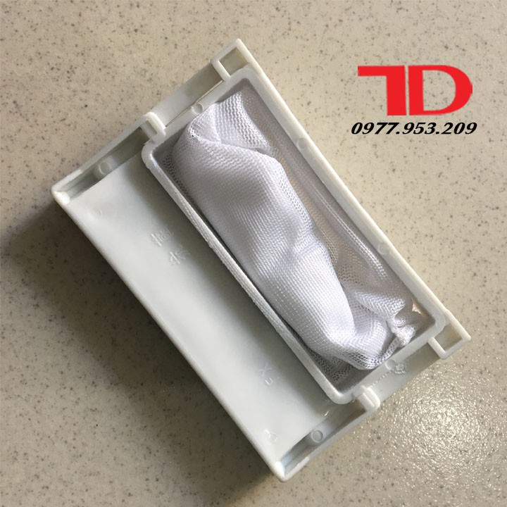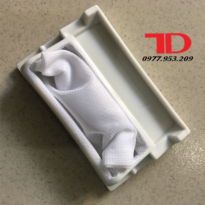 - Là túi để lọc các bông hoặc xơ vải của quần áo khi giặt đồ, không cho các sợi vải, bột giặt không tan... đi xuống đường thoát nước. Còn đối với máy giặt cửa ngang (hay còn gọi là cửa trên) thì bộ phận lọc xơ vải này lại bằng nhựa và nằm ở phía dưới sát đường thoát nước.
