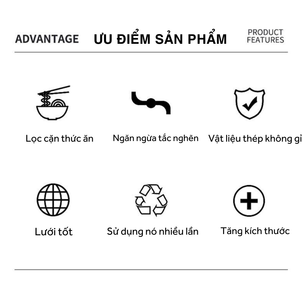 - Hiệu quả sản phẩm: Giữ 99% tóc, rác, mảnh vụn hoặc bắt bất kỳ vật quý giá nào đi xuống cống đồng thời nước có thể chảy tự do.