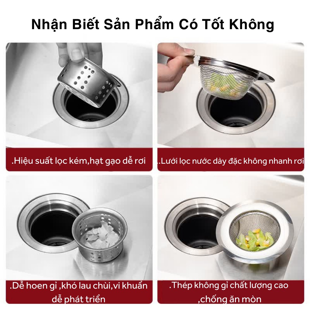 - Lưới lọc bồn rửa làm từ thép không gỉ phù hợp với hầu hết các cống thoát nước và xử lý rác của bồn rửa chén, các lỗ siêu nhỏ của lưới lọc ngăn chặn hiệu quả ngay cả những hạt thức ăn nhỏ nhất đi qua.