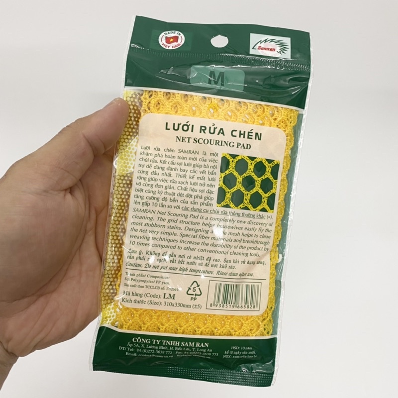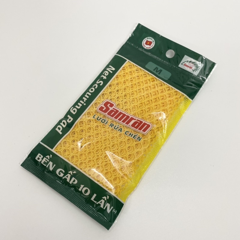 - Lưới rửa chén Samran là một khám phá hoàn toàn mới của việc chùi rửa. Kết cấu sợi lưới giúp bà nội trợ dễ dàng đánh bay các vết bẩn cứng đầu nhất. Thiết kế mắt lưới rộng giúp việc rửa sạch lưới trở nên vô cùng đơn giản. Chất liệu sợi đặc biệt cùng kỹ thuật dệt đột phá giúp tăng cường độ bền của sản phẩm lên gấp 10 lần so với các dụng cụ chùi rửa thông thường khác.