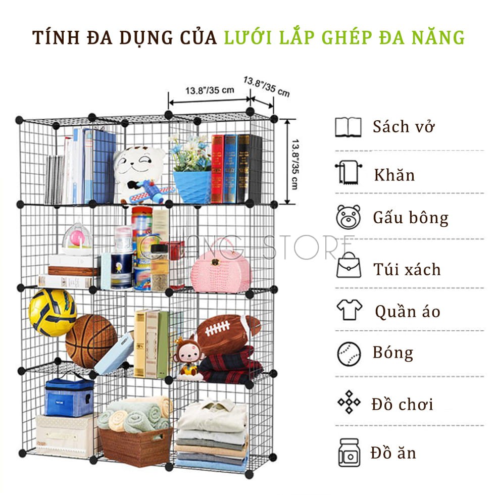 Nhà cửa & Đời sống > Nội thất > Kệ & Giá || Lưới Sắt, Lưới Thép lắp ghép đa năng làm giá để sách kệ để đồ, chuồng thú size 35x35cm siêu tiện lợiCòn hàng