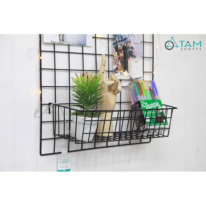 Đã từ lâu, khung lưới – tấm lưới ô vuông đã trở thành vật tư treo hàng hóa phổ biến từ nhà ra cửa hàng đế các event sự kiện... Chỉ đơn giản là lắp tấm lưới lên vách tường, sau đó cài các rổ móc treo vào tấm lưới và thoải mái treo sản phẩm của bạn...Ngoài tính năng treo sản phẩm tại các Shop bán hàng, tấm lưới sắt trang trí còn có rất nhiều ứng dụng thú vị như: treo một tấm lưới sắt trước bàn làm việc để kẹp những tờ ghi chú, dùng kẹp gỗ để kẹp ảnh kỷ niệm, kết hợp cùng dây đèn led trang trí đẹp mắt, treo những chậu cây cảnh nhỏ xinh...