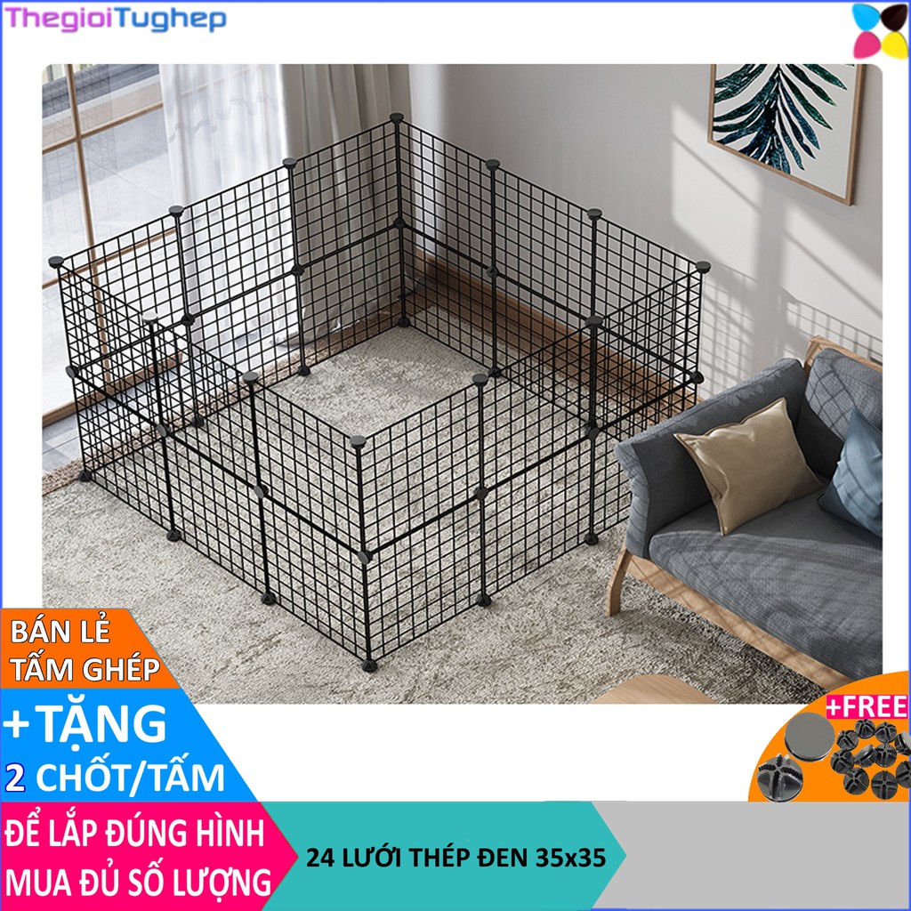Lưới thép lắp ghép đa năng làm giá, kệ, tủ đồ, chuồng chó, chuồng mèo, thú cưng màu đen 35x35 cm👉Tặng kèm 2 CHỐT cho mỗi tấm