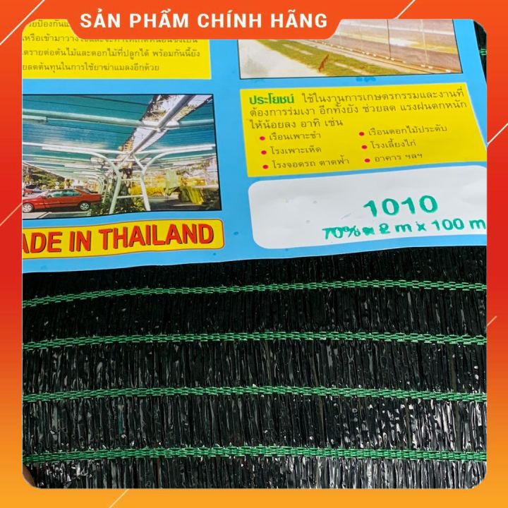 Lưới che nắng Thái Lan có độ bền rất cao trung bình 7 năm, lưới nhẹ, bền, đẹp, thẳng, sợi lưới đồng đều và không thấm nước, dùng để che nắng cho các vườn cây lan, vườn ươm, vườn trồng hoa màu, rau sạch, che nắng lối đi, bể bơi, hồ cá, khu nghỉ mát, công trình... thích hợp với những công trình mang tính bền vững.