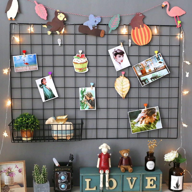 Tấm Lưới Thép Trang Trí Đa Năng, Giỏ Lưới Đựng Đồ Tặng Kèm Đinh Treo