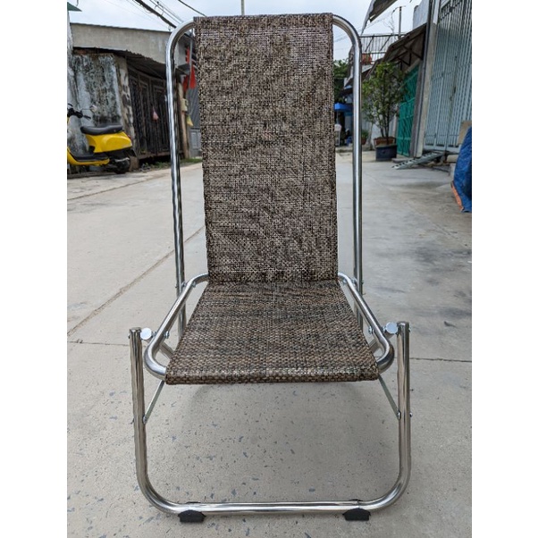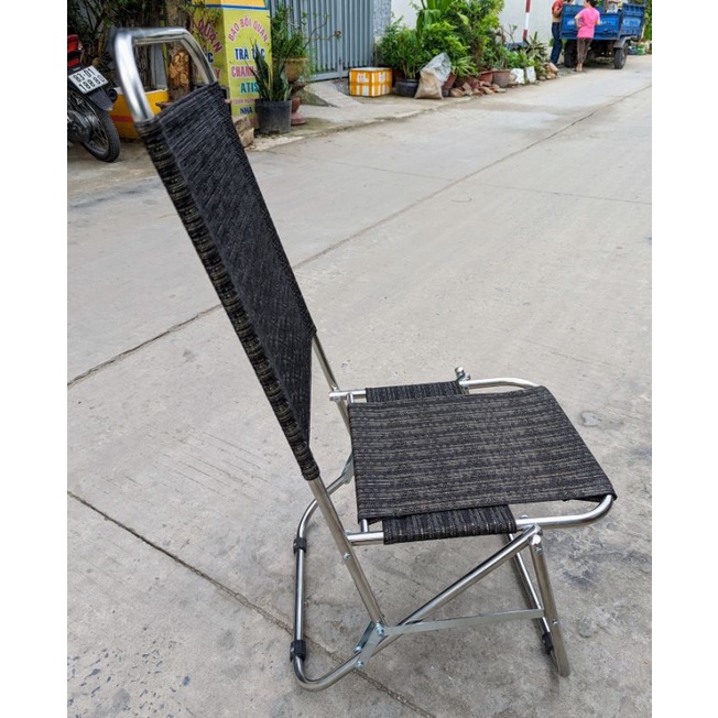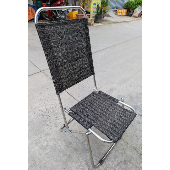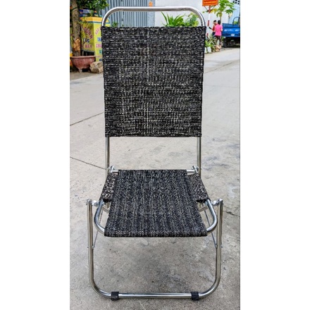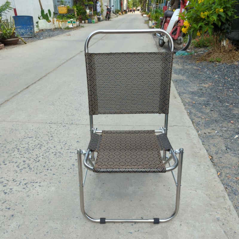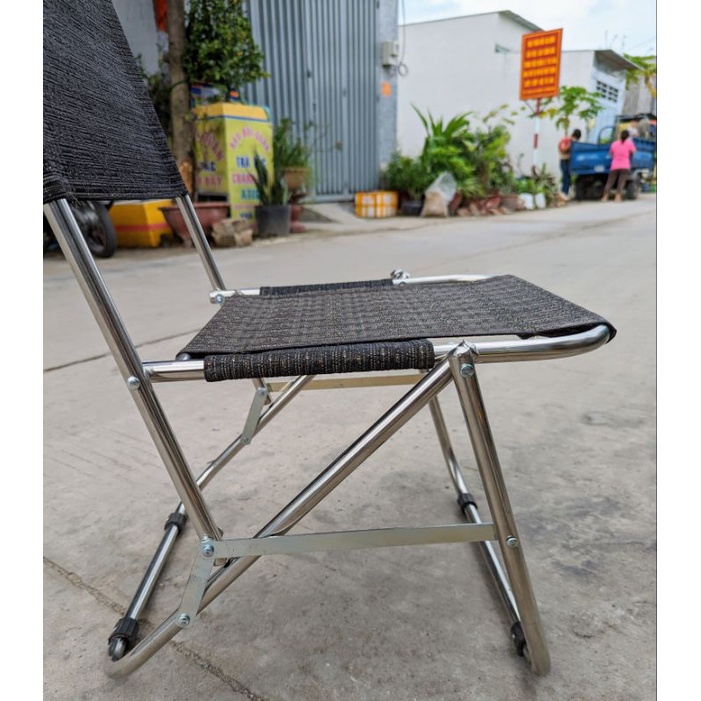 Ghế xếp gọn với khung làm bằng Inox 201 ( 100%)Vải Lưới Thổ Cẩm bền đẹp và chắc chắn