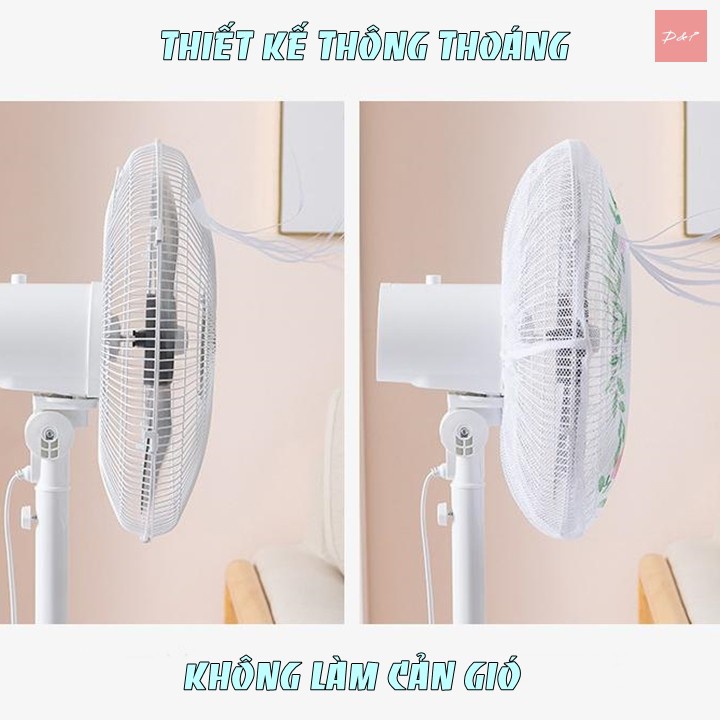 - Thiết kế thông minh với băng thun giúp cố định, để lưới ôm sát lồng quạt.
