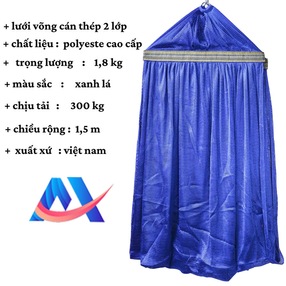 - Lưới võng 2 lớp ít giãn, cán võng rộng thoải mái, lưới nằm mát rộng rãi.