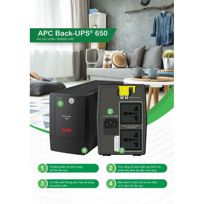 Máy tính & Laptop > Linh Kiện Máy Tính > Bộ Lưu Điện || Bộ Lưu Điện APC 650VA/325Waats ( BX650Li-MS ) Like New 99%Còn hàng