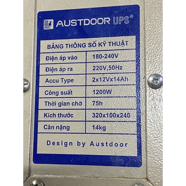 Hàng đã qua sử dụng giá trên không bao acqui Thông số kỹ thuật Bình Lưu Điện Austdoor UPS.P1000