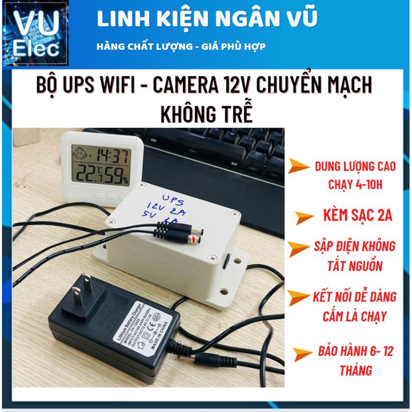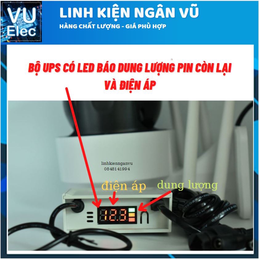 - Bộ lưu điện dự phòng UPS cho modem wifi 12V 3Ah chất lượng cao. Đây là loại UPS mini nhỏ gọn dùng làm nguồn điện cho thiết bị như modem wifi, camera giám sát, sạc dự phòng, nguồn khóa cửa, nguồn box tivi hdd, nguồn điện LED và nhiều thiết bị khác.
