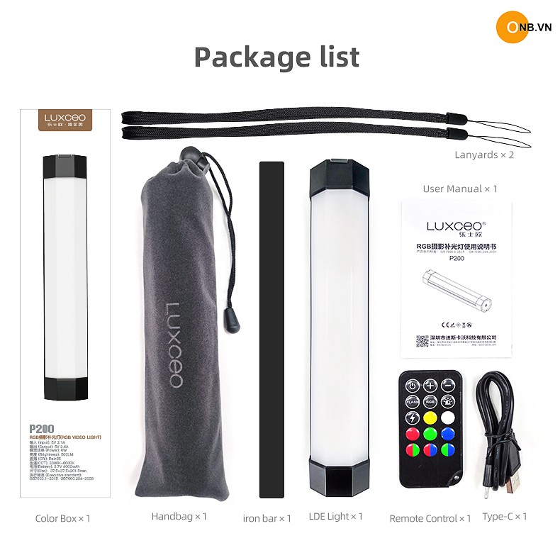 Luxceo P200 RGB Led Stick RGB - Gậy Led dòng cao cấp chỉnh màu sắc RGB, chỉnh độ K từ 3000k-6000k , chống nước chuẩn IP68. Dài 20cm. dùng cho nhiếp ảnh quay chụp, sản phẩm ,vlog, model tạo hiệu ứng màu, làm đèn backgroud ... cực kỳ đa năngĐi kèm là remote điều khiển từ xa với nhiều chế độ màu thiết lập sẵn. Ngoài ra có app để kết nối điện thoại và đèn chỉnh màu dễ hơn.