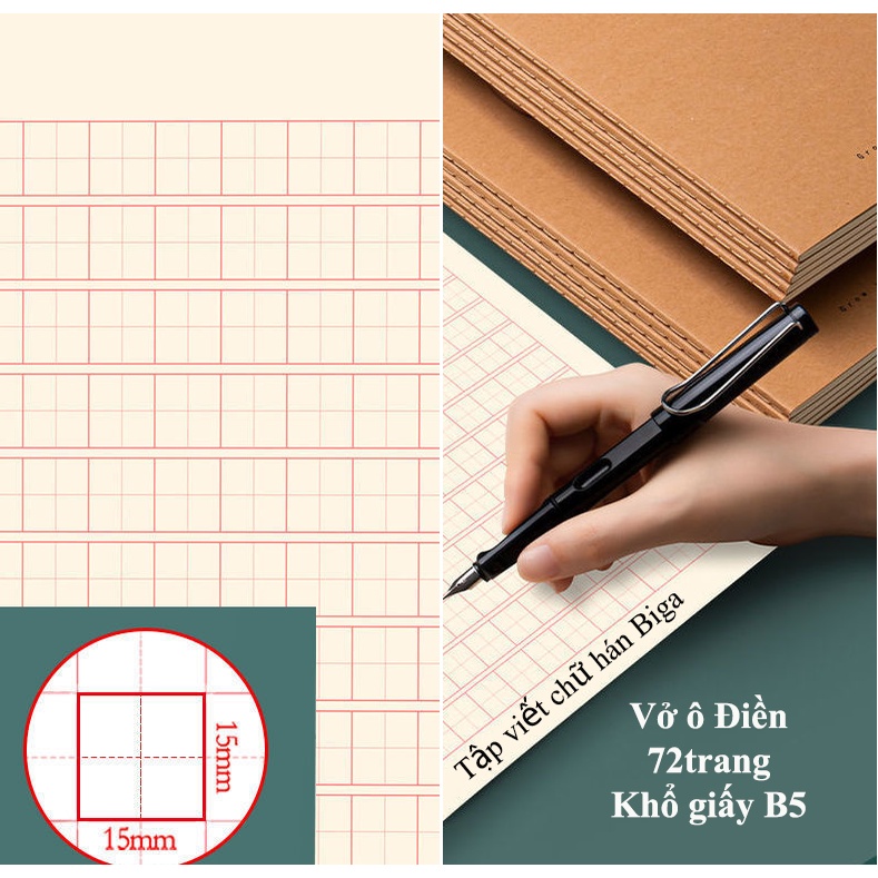 - Vở kẻ ô vuông theo tiêu chuẩn dễ dàng tập viết chữ hán theo đúng quy cách