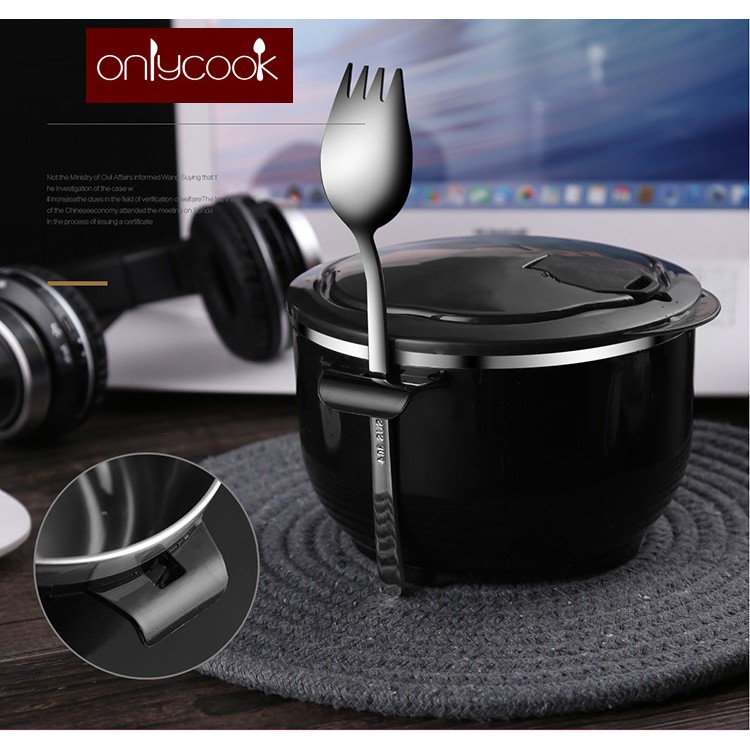 Ly ăn mì tiện lợi inox 304 kèm muỗng ăn mì - Onlycook - 900ml