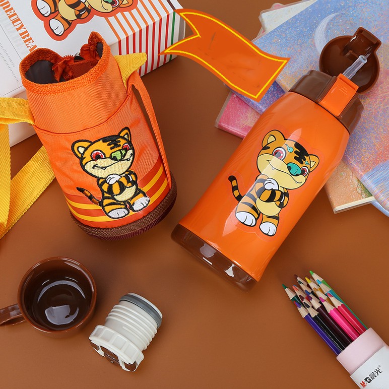 Giới thiệu [THANH LÝ] Bình giữ nhiệt kèm túi đeo bảo vệ bình, 2 đầu thay thế: đầu rót nước và đầu vòi hút