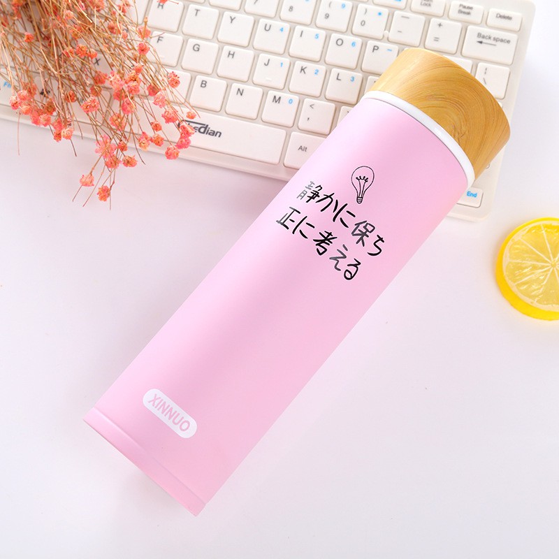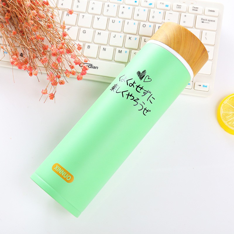 Bình giữ nhiệt kute kiểu Hàn Quốc nắp vân giả gỗ cực chất- Chất liệu: ruột inox giữ nhiệt
