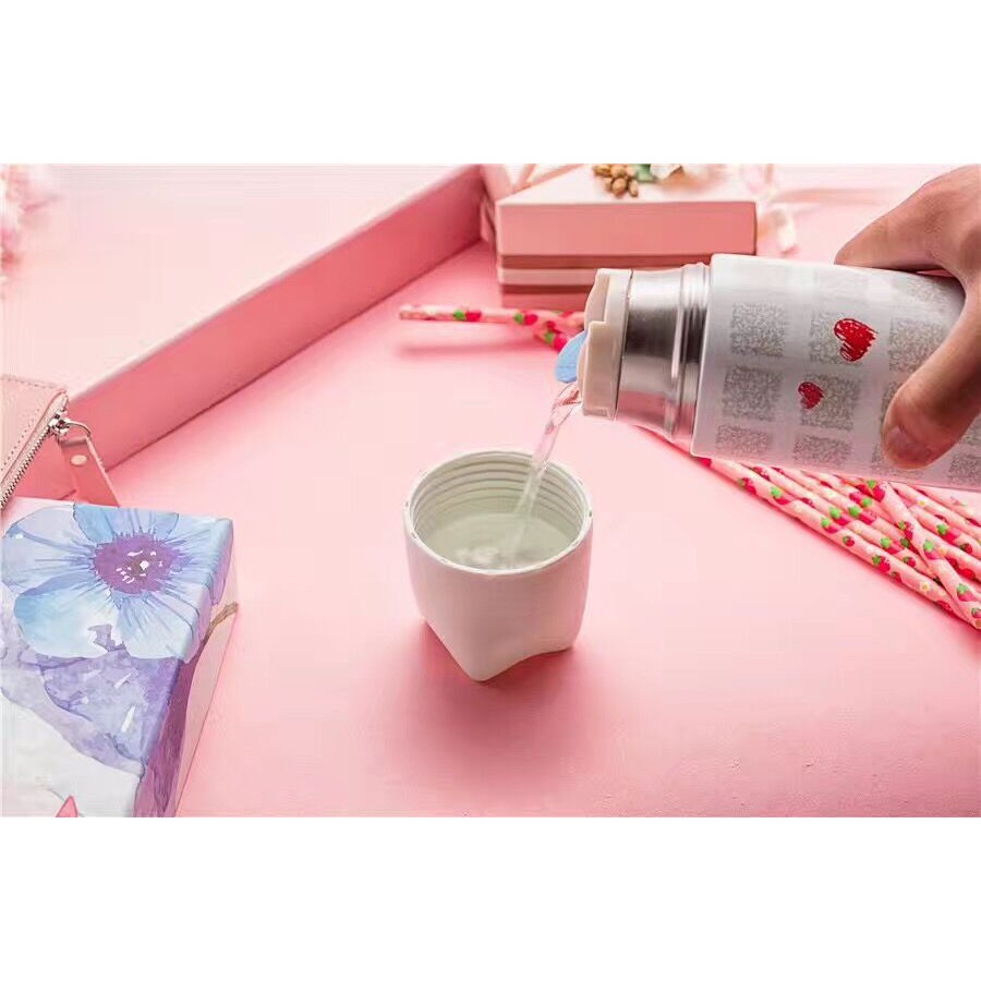 [THANH LÝ] - Bình giữ nhiệt nắp tai mèo họa tiết trẻ trung 500ml