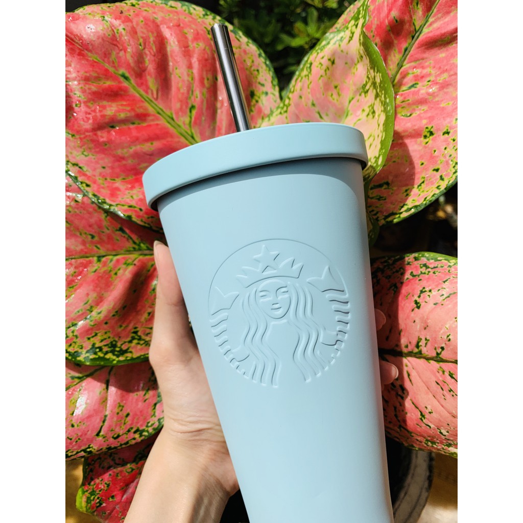 Ly Bình Giữ Nhiệt Starbuck Nhám Lì Inox 304 Kèm Ống Hút