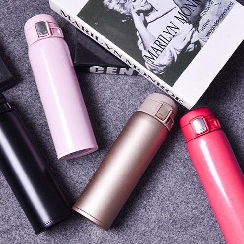 Bình giữ nhiệt nóng lạnh 500ml kiểu Nhật cao cấp, inox 304 chống gỉ sét, có chốt khóa mở nắp, giữ nhiệt 6-12h, phù hợp sử dụng trong văn phòng- Kích thước: 22.5cm x 6.5cm