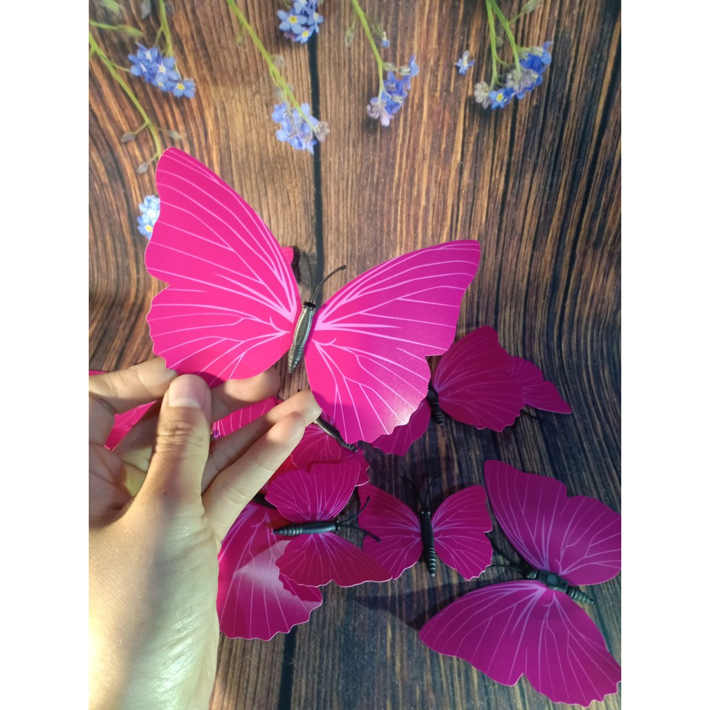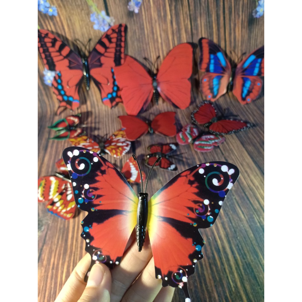 Ưu điểm: túi gồm 12 bướm với nhiều kích thước, phối màu tươi đẹp, phụ kiện đi kèm băng dính 2 mặt và đặc biệt bướm có 1 điểm nam châm có thể dính vào đồ kim loại