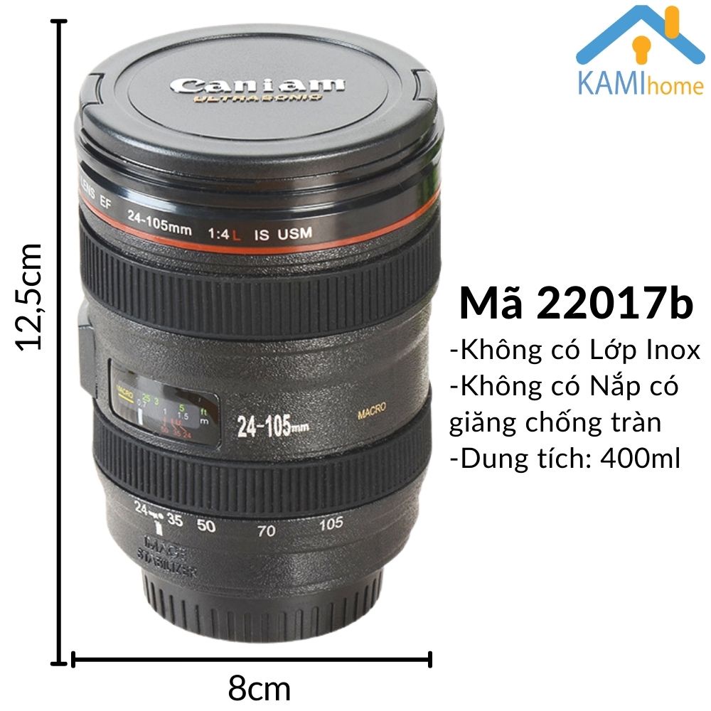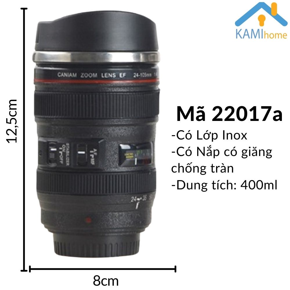 Ly cà phê cốc uống nước có nắp hình ống kính máy ảnh 400ml mã 22017