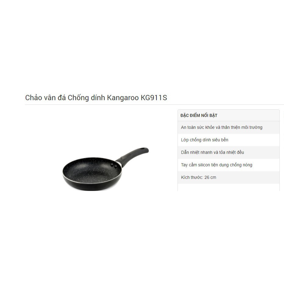 Nhà cửa & Đời sống > Dụng cụ nhà bếp > Chảo || Thanh lý Chảo vân đá Chống dính Kangaroo KG911S KG911M KG912S KG912M KG919M chính hãngCòn hàng