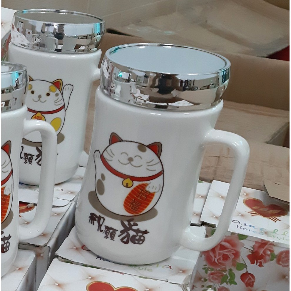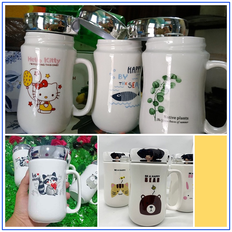 LY CỐC SỨ NẮP GƯƠNG SOI NHIỀU HÌNH- Cốc sứ cao cấp có quai kết hợp nắp có thể soi gương độc đáo