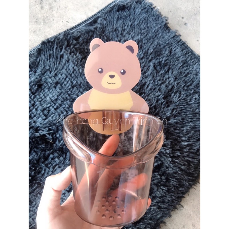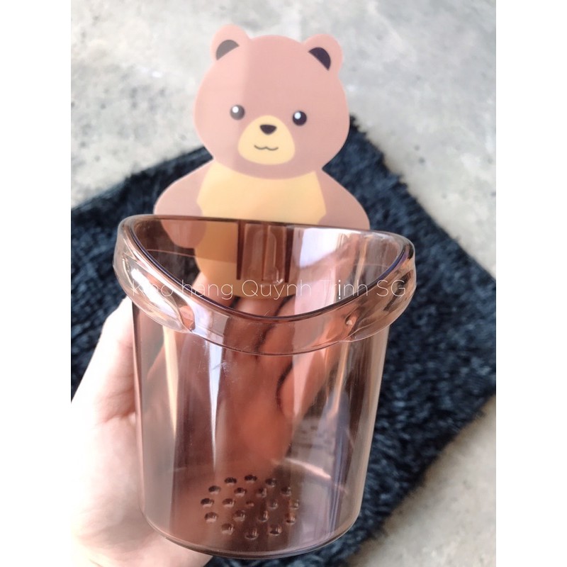 Ly Cốc Dán Tường Hình Gấu Nâu Đựng Bàn Chải, Kem Đánh Răng, Đồ Dùng Nhà Tắm