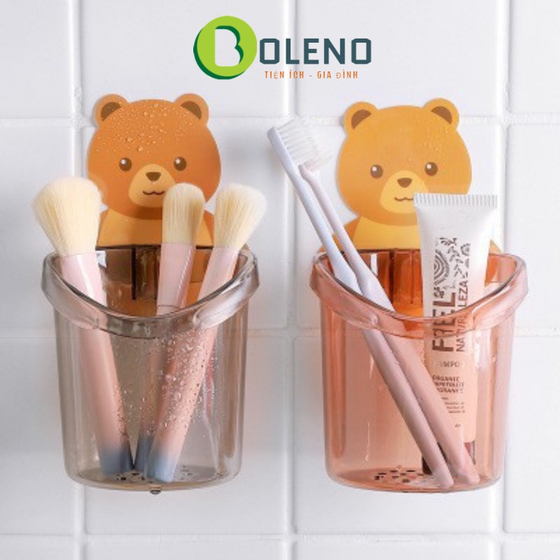 Cốc đựng bàn chải kem đánh răng dán tường kiểu con gấu dễ thương cốc dánh tường đựng đồ dùng thông minh