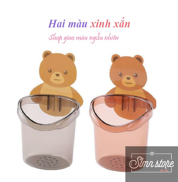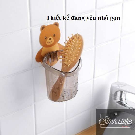 Ly cốc đựng bàn chải kem đánh răng dán tường hình gấu cute, Cốc dán tường nhà tắm chú gấu dễ thương. SD1_LyGau